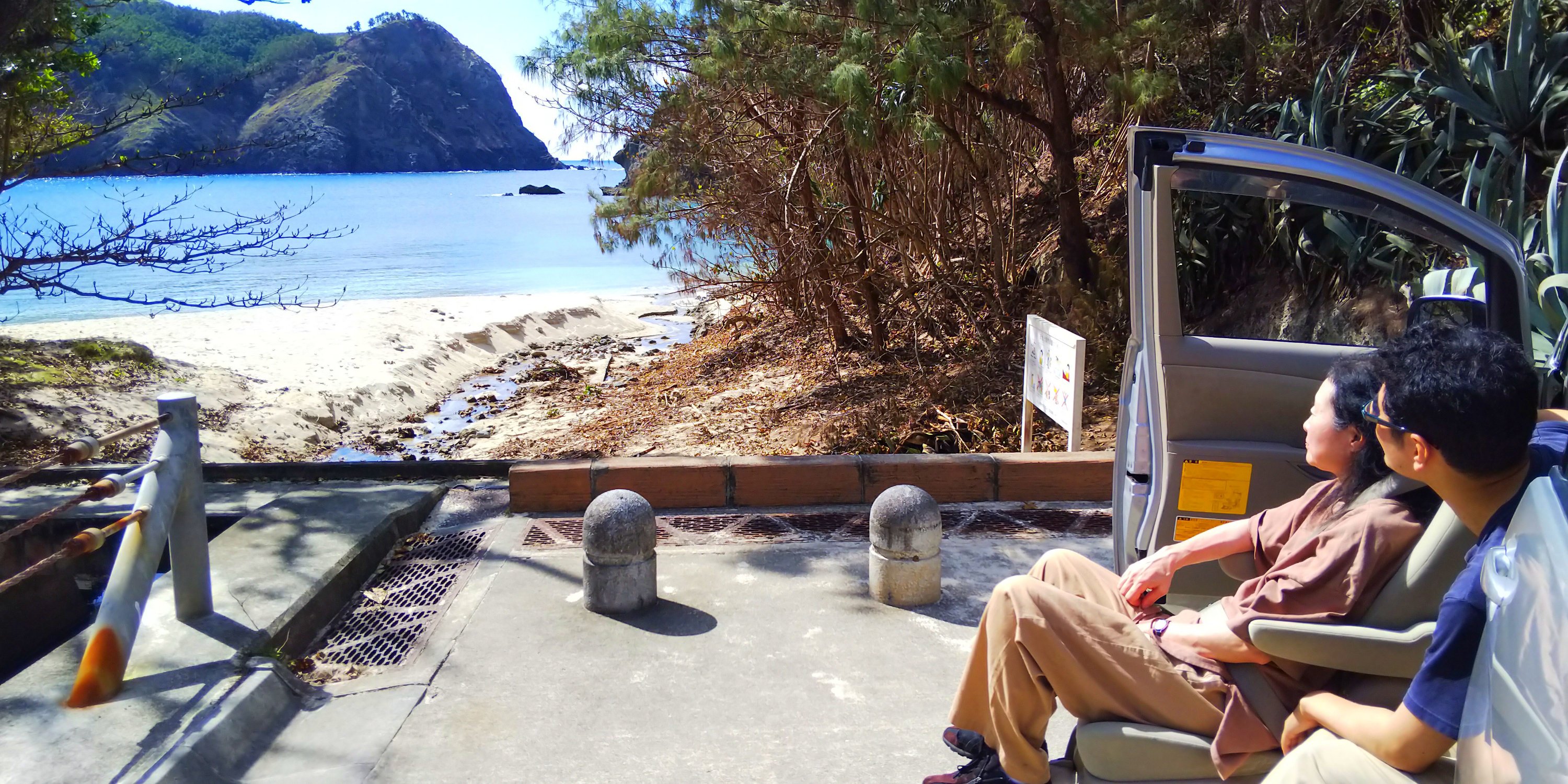 足が御不自由なお客様なので、車の乗り降りが大変だったのですが、トミーG号のリフトアップシートのお陰で、車椅子への移動も楽で、車椅子を使用しなくても島の綺麗な風景を眺めたり、植物や生物をご紹介したり、島アイスを景色の良いところで食べたりして1日たっぷりと楽しんでいただく事が出来ました!